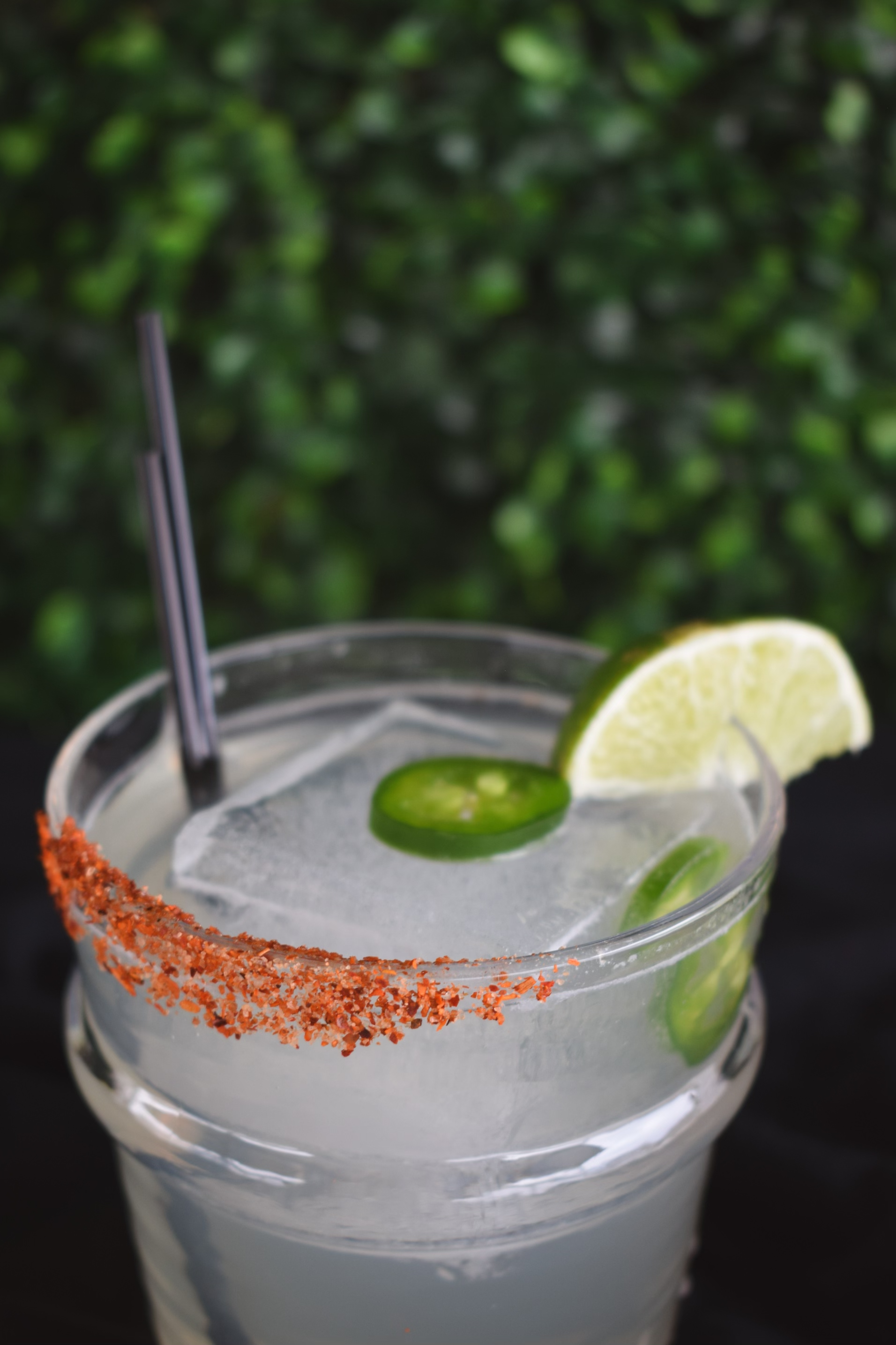 All Business: 21 Seeds Spicy Tequila, Triple Sec, Lime and Lemon Juice topped with Fresh Jalapeños